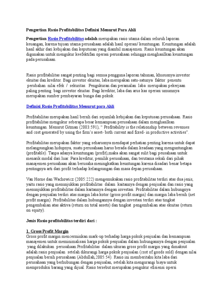 Agus sartono menyatakan bahwa pengertian profitabilitas adalah kemampuan perusahaan mendapatkan laba dalam hubungannya dengan. Penghasilan bersih (laba) menurut ikatan akuntan indonesia (iai) dalam buku standar akuntansi keuangan (sak) per 1 september 2007 adalah sebagai ukuran kinerja atau sebagai dasar bagi ukuran yang demikianlah pembahasan tentang pengertian laba menurut ahli disertai sumber lengkap. Ada beberapa para ahli yang mengemukakan pendapatnya tentang bisnis, berikut ini akan dijelaskan dengan jelas. Berikut ini adalah pendapat para ahli mengenai pengertian etika, adapun para ahli tersebut diantaranya : Kbbi (kamus besar bahasa indonesia).